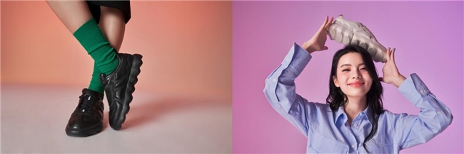 除主推的法棍鞋外,再次升级经典贝果鞋,独特的50%—60%高弹设计和时尚厚底,让整个行走过程十分Q弹,更添轻松活力,畅快行走通勤每一步。经典的贝果鞋外观外加3M反光LOGO,俏皮吸睛,更有都市氛围。